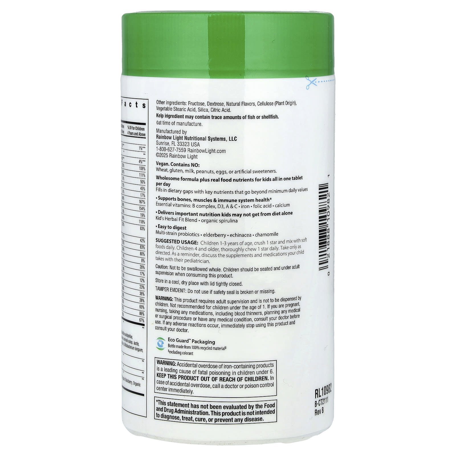 لكن فوائده لا تتوقف عند هذا الحد. فهذا الفيتامين المتعدد القابل للمضغ يلعب دورًا هامًا في تعزيز صحة العين والعظام، وحماية الخلايا العصبية في الأجسام النامية. ولا يقتصر تميز فيتامين Rainbow Light Kids One المتعدد على فعاليته فحسب، بل إنه نباتي وخالٍ من الغلوتين أيضًا.