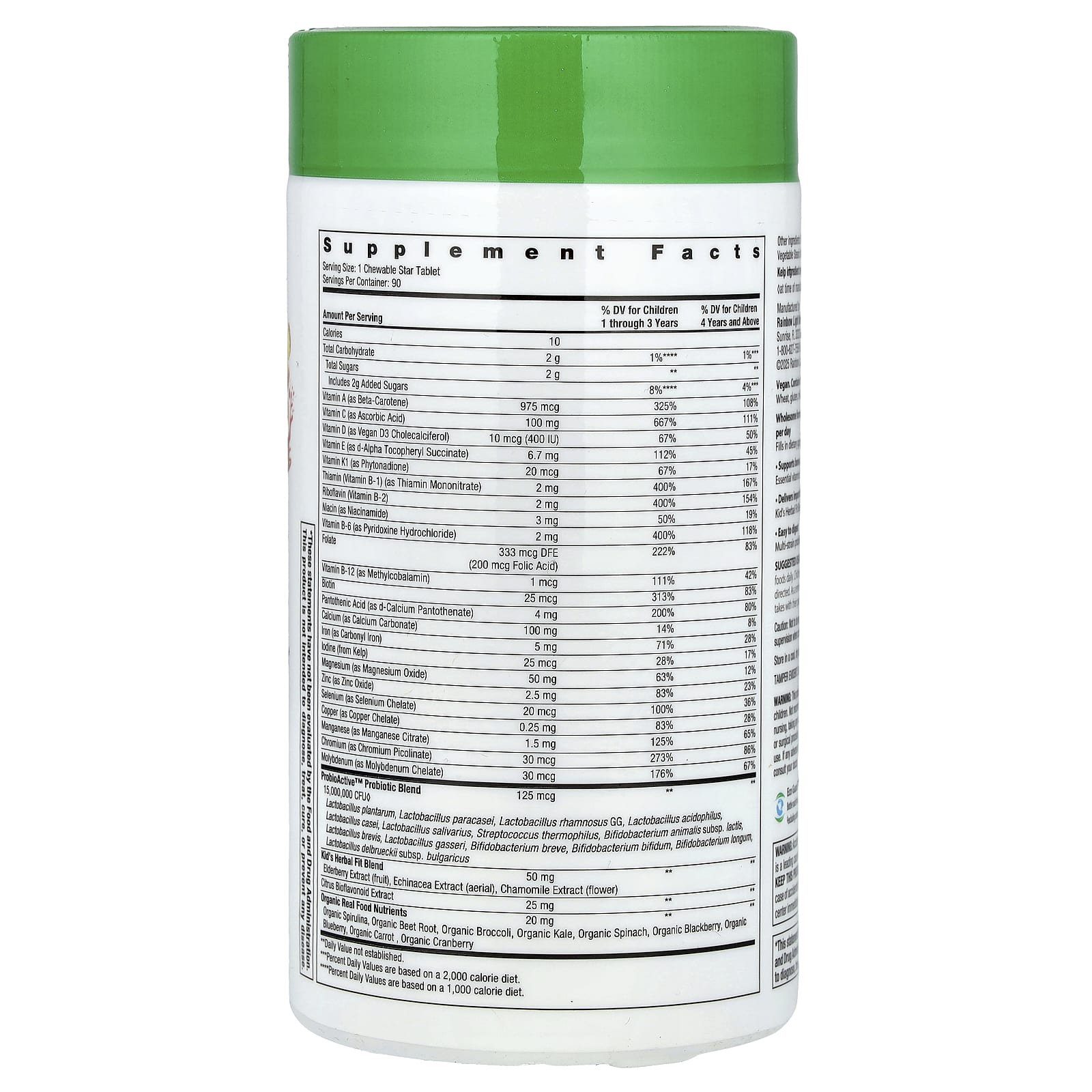 فيتامينات ومعادن متعددة + خلاصات أعشاب + سوبر فودز + بروبيوتك الأفضل للأطفال بنكهة الفواكه 90 قرص مضغ Rainbow Light Kids One Chewable Multivitamin Fruit Punch Flavor