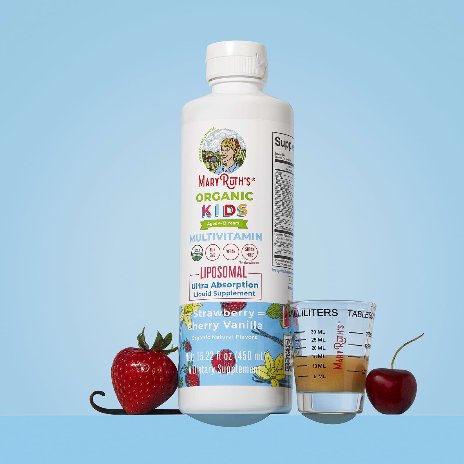 MaryRuth’s , Organic Kids Multivitamin Liposomal, Ages 4-13 Years, Strawberry Cherry Vanilla, 15.22 fl oz (450 ml