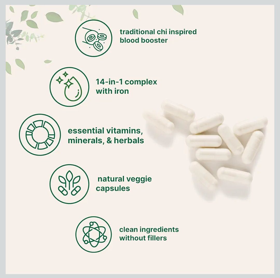 - الفوائد: مصمم لدعم إنتاج خلايا الدم الحمراء، تحسين الدورة الدموية، وزيادة الطاقة.