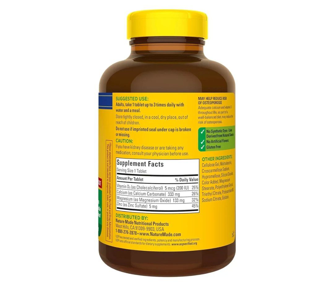 Nature Made Calcium, Magnesium Oxide, Zinc with Vitamin D3 helps support Bone Strength, Tablets, 300 Count