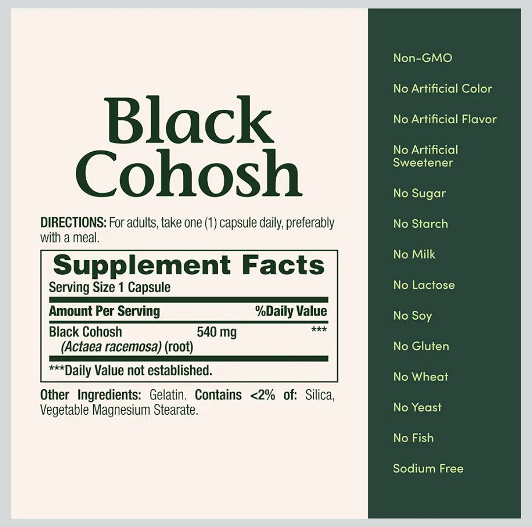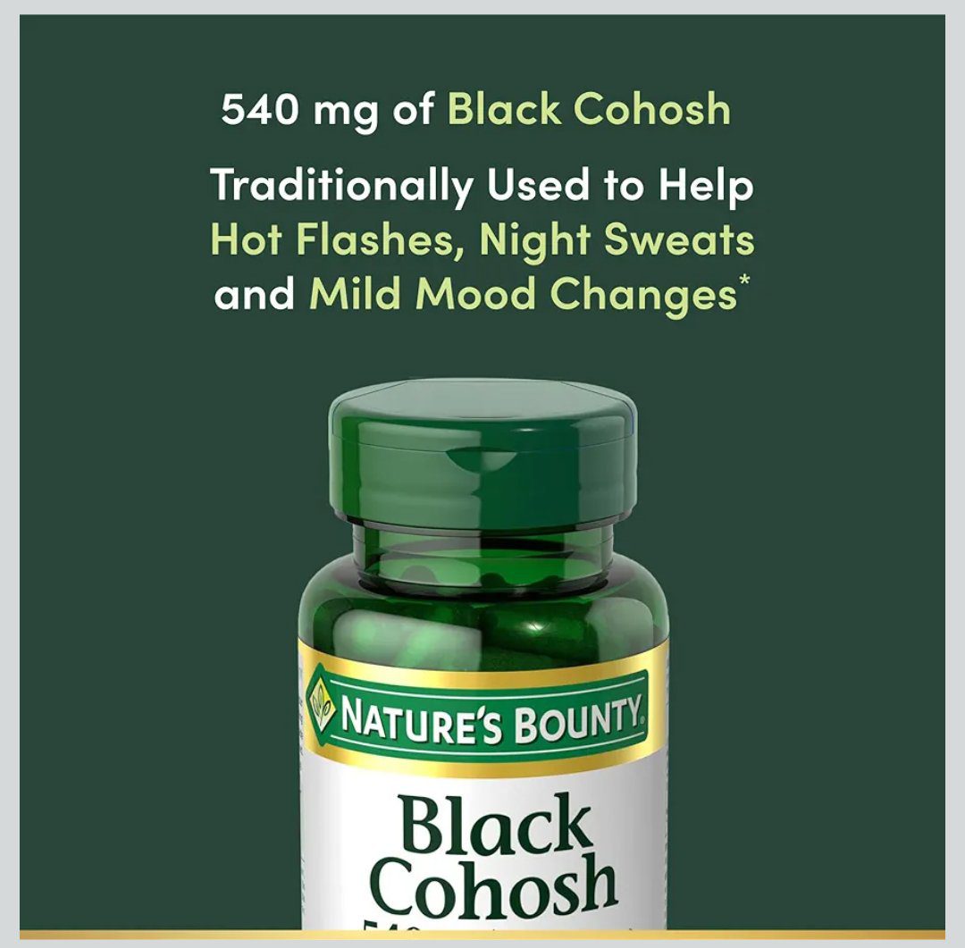 Nature’s Bounty Black Cohosh Root Pills and Herbal Health Supplement, Natural Menopausal Support, 540 mg, 100 Capsules