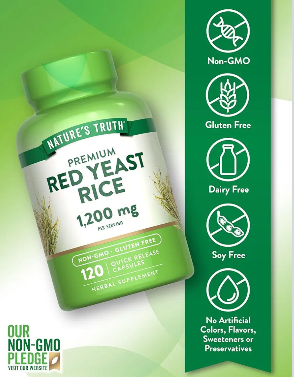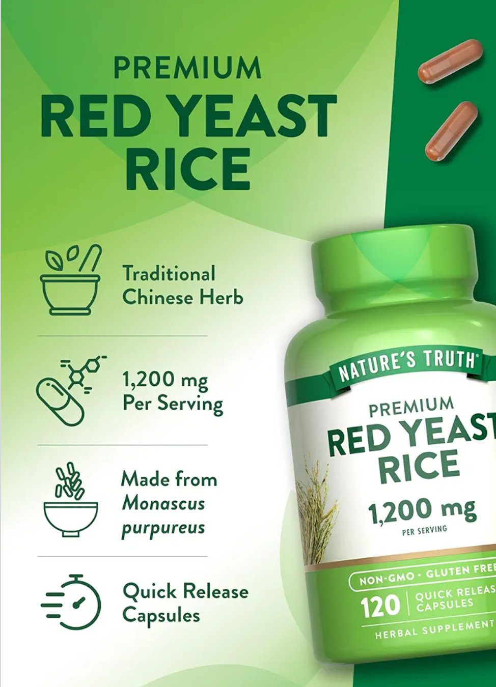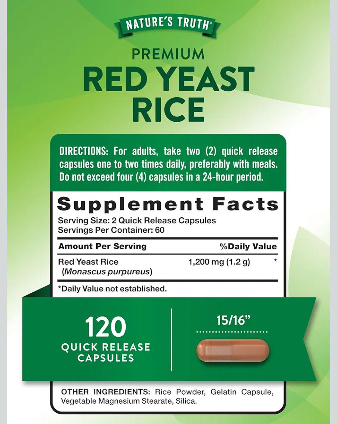 Nature’s Truth Red Yeast Rice Capsules 1200 mg | 120 Count | Non-GMO & Gluten Free Supplement