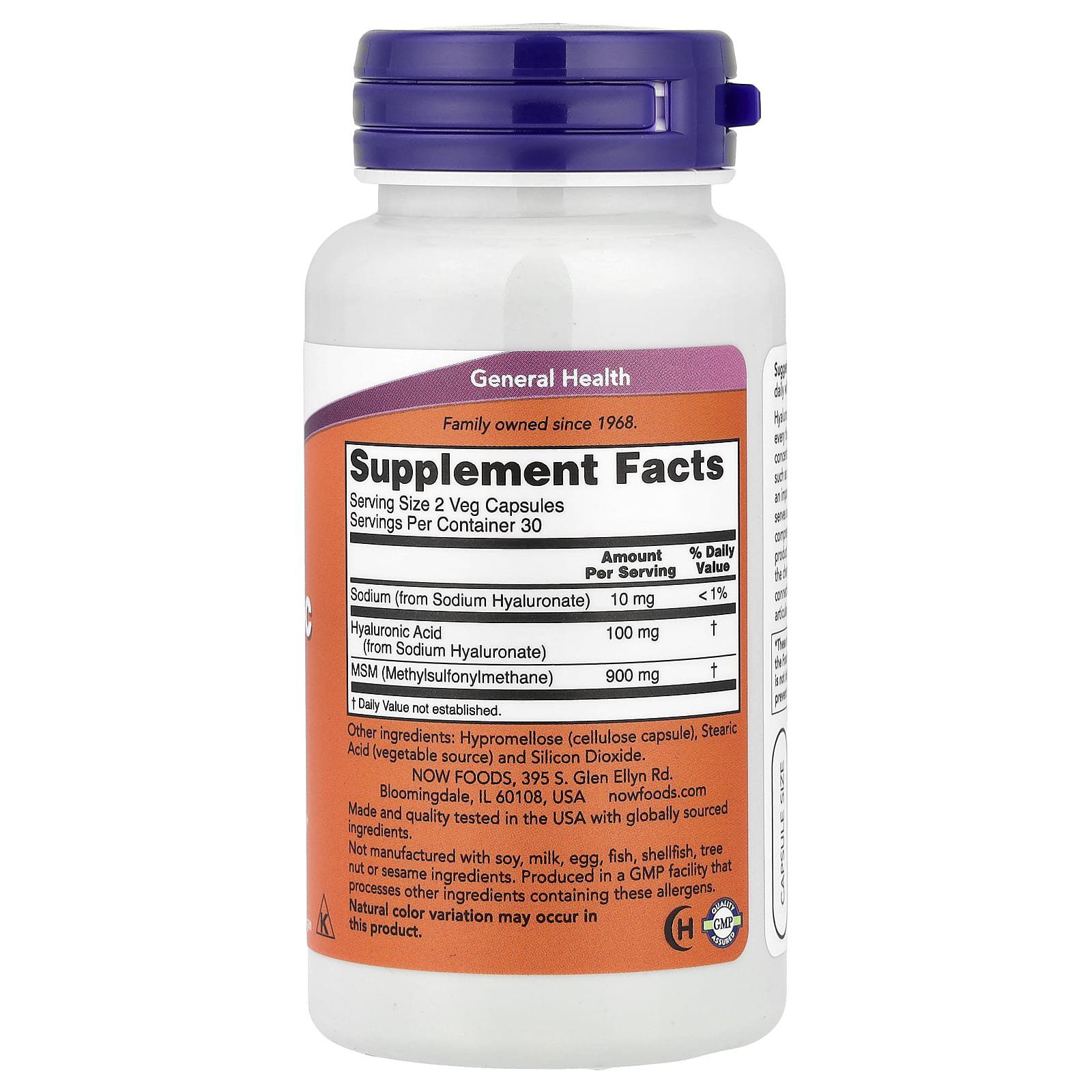 NOW Foods , Hyaluronic Acid With MSM, 60 Veg Capsules