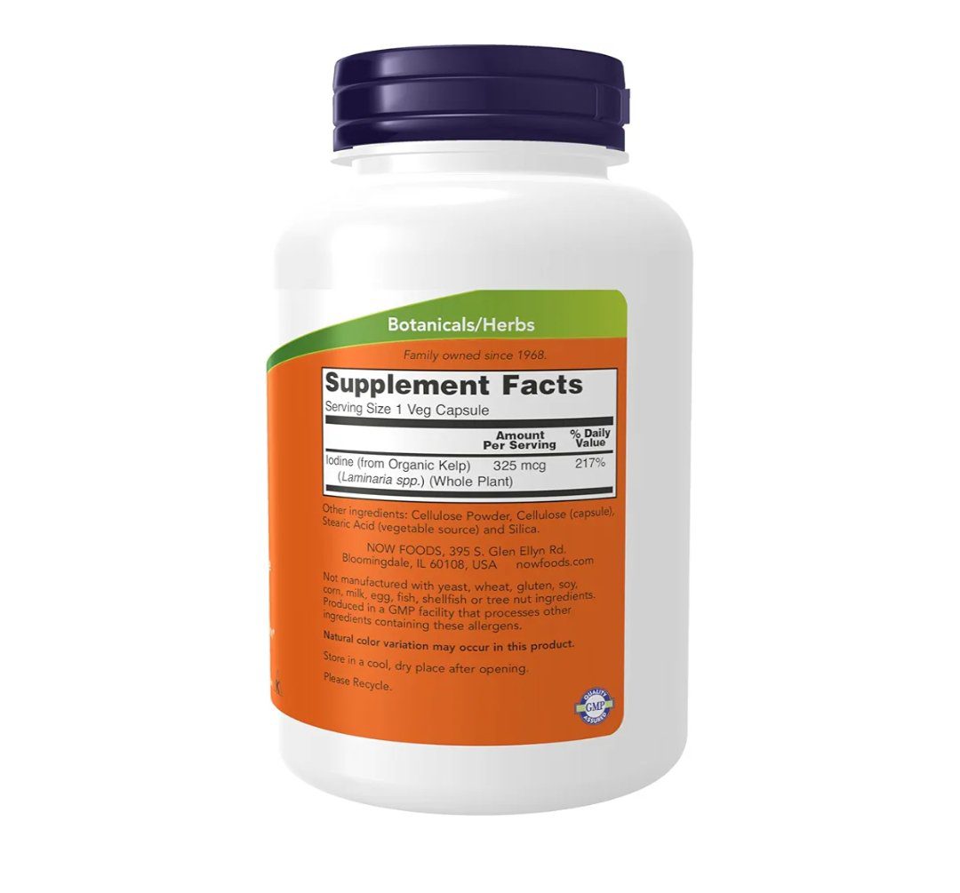 NOW Supplements, Kelp 325 mcg of Natural Iodine, Supports Healthy Thyroid Function*, Super Green, 250 Veg Capsules