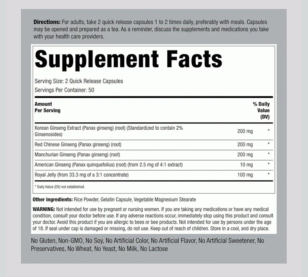 Piping Rock Ginseng Complex Capsules | 100 Count | with Royal Jelly | Non-GMO, Gluten Free Supplement
