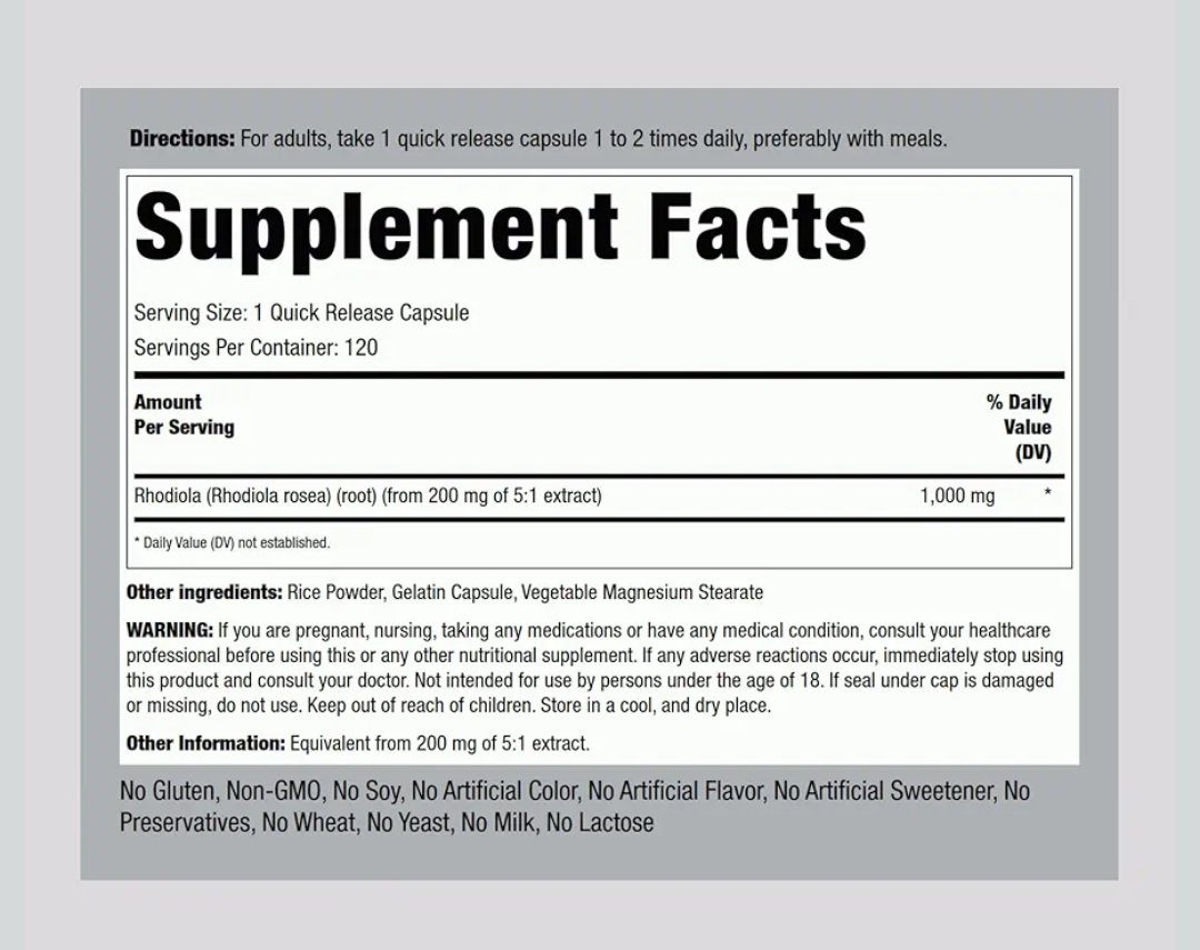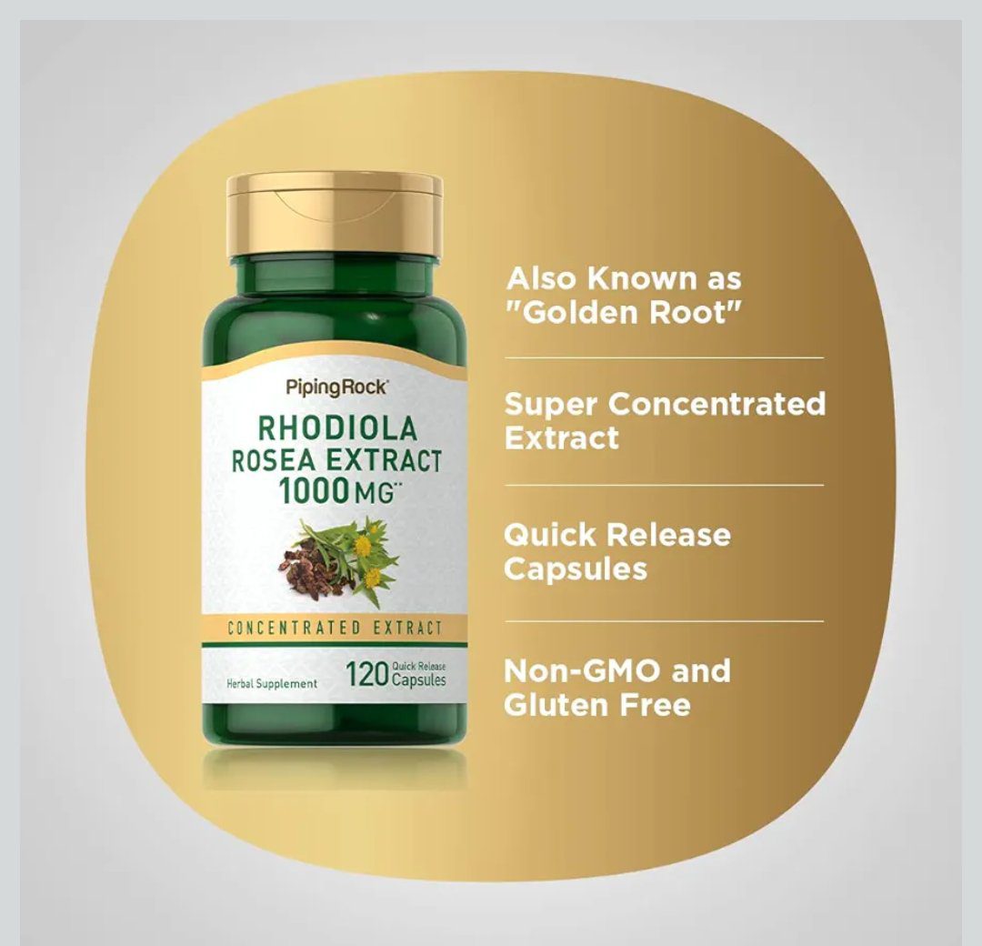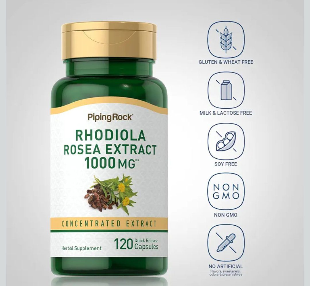 Piping Rock Rhodiola Rosea Extract Supplement | 1000mg | 120 Capsules | Concentrated Herbal Root | Non-GMO, Gluten Free