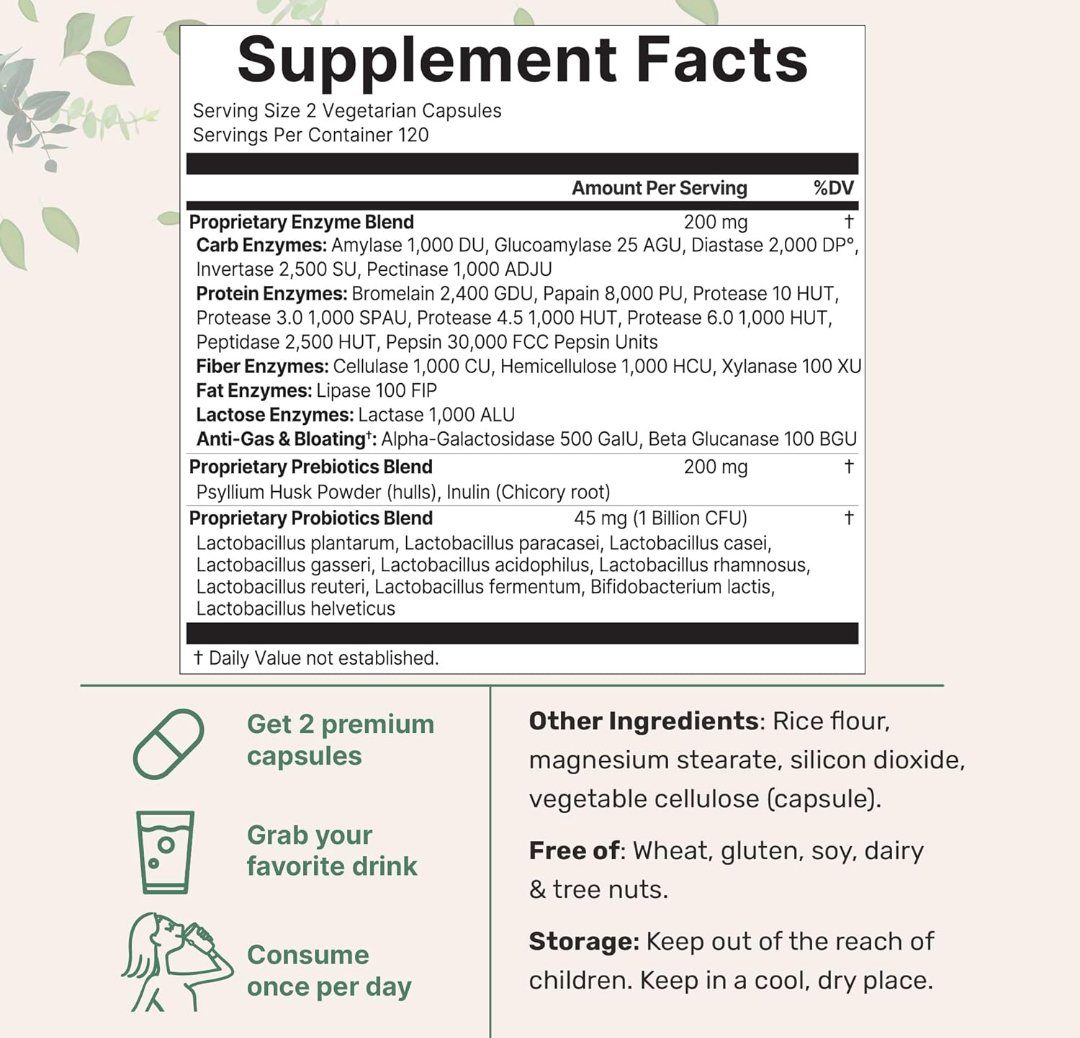 كن أول من يقيم “Super Enzymes with Prebiotics & Probiotics, 240 Veggie Capsules | High Potency Digestive Enzymes For Women & Men | Probiotic, Bromelain, Psyllium Husk & More | Immune & Gut Health Support” إلغاء الرد